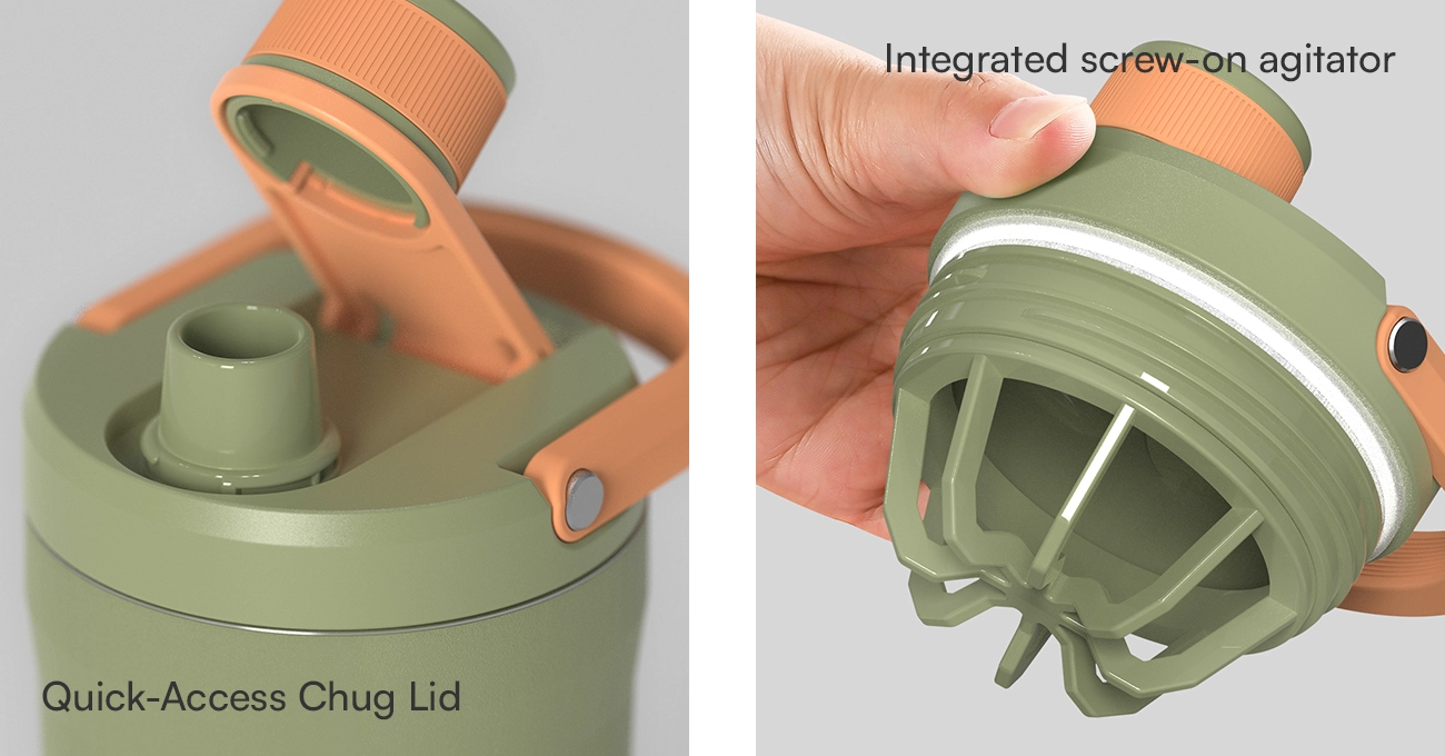 Users can freely mix and match accessories on the bottle to create fully personalized colors. Paired with designed patterns on the body, this gives the bottle a diverse and stylish appearance.