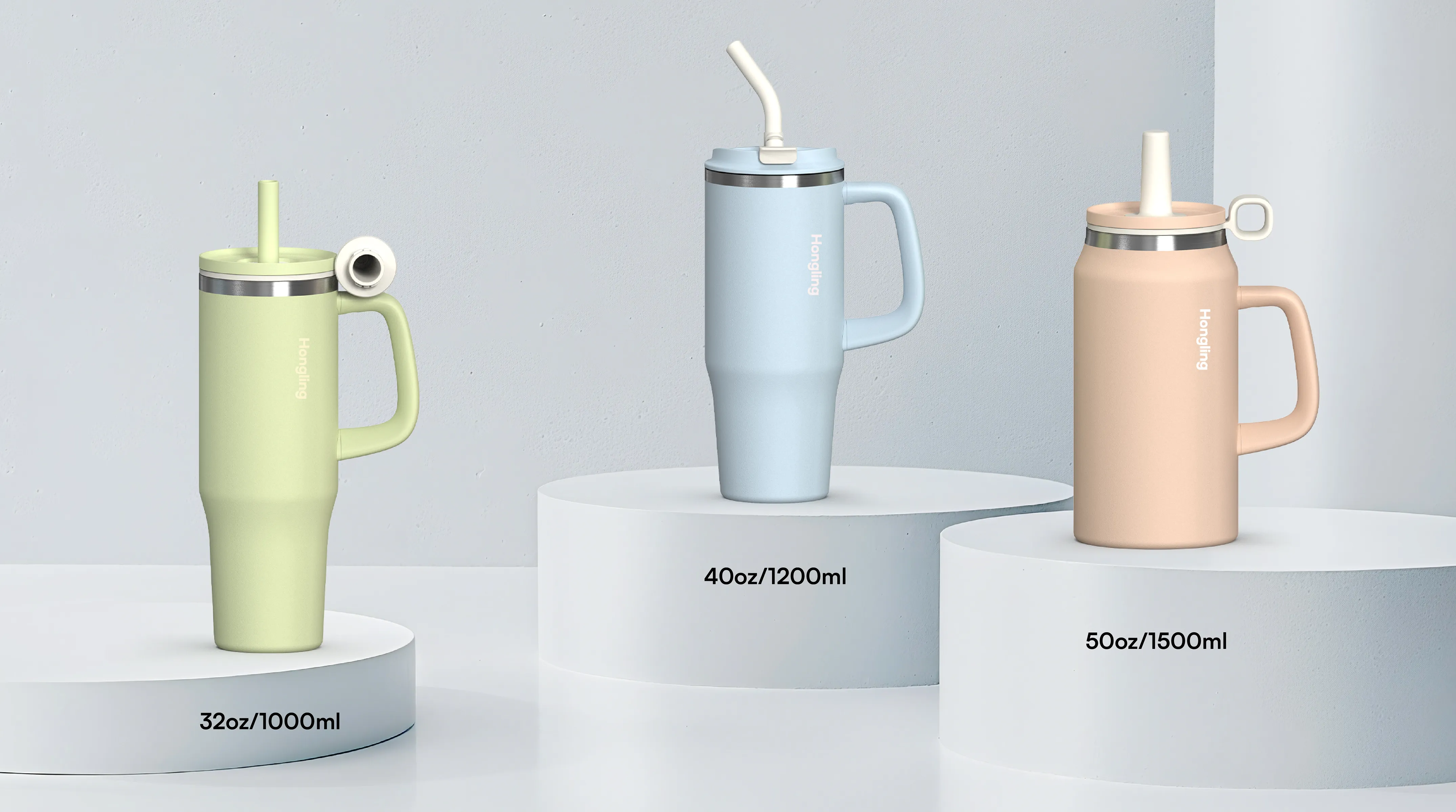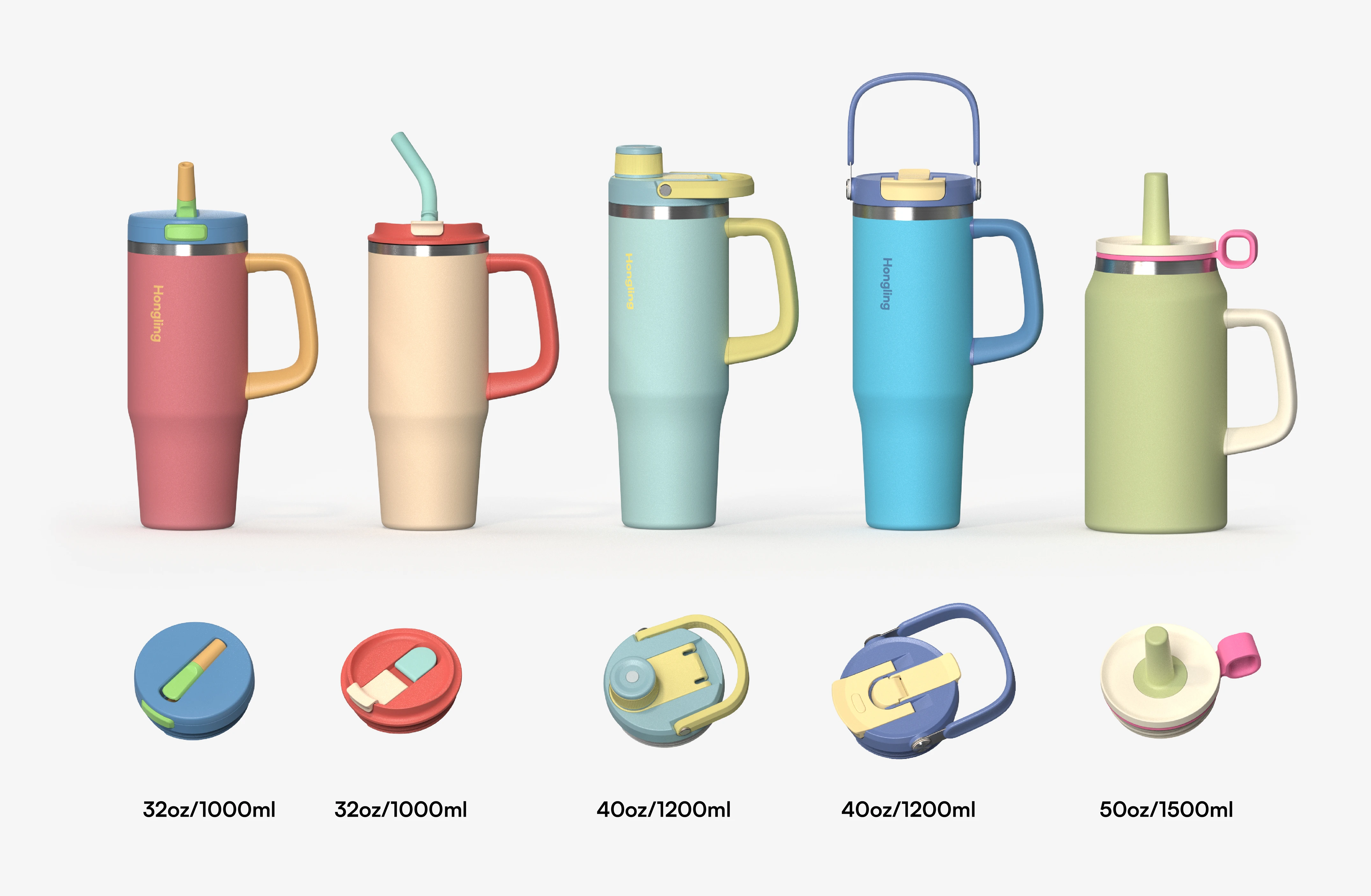 This tumbler is available in three capacities:32oz/1000ml,40oz/1200ml,50oz/1500ml. The cup body adopts a rounded shape and is paired with colorful designs