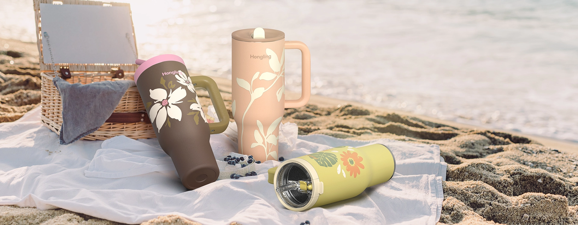 The Tumbler with Handle comes with 3 different lids and an aesthetically designed handle, balancing functionality and style.
