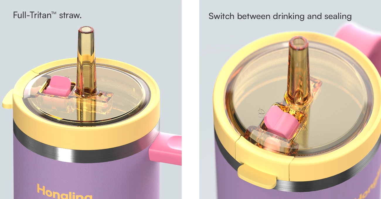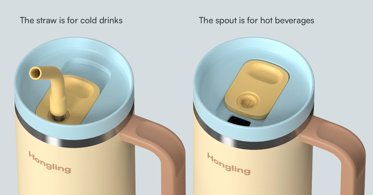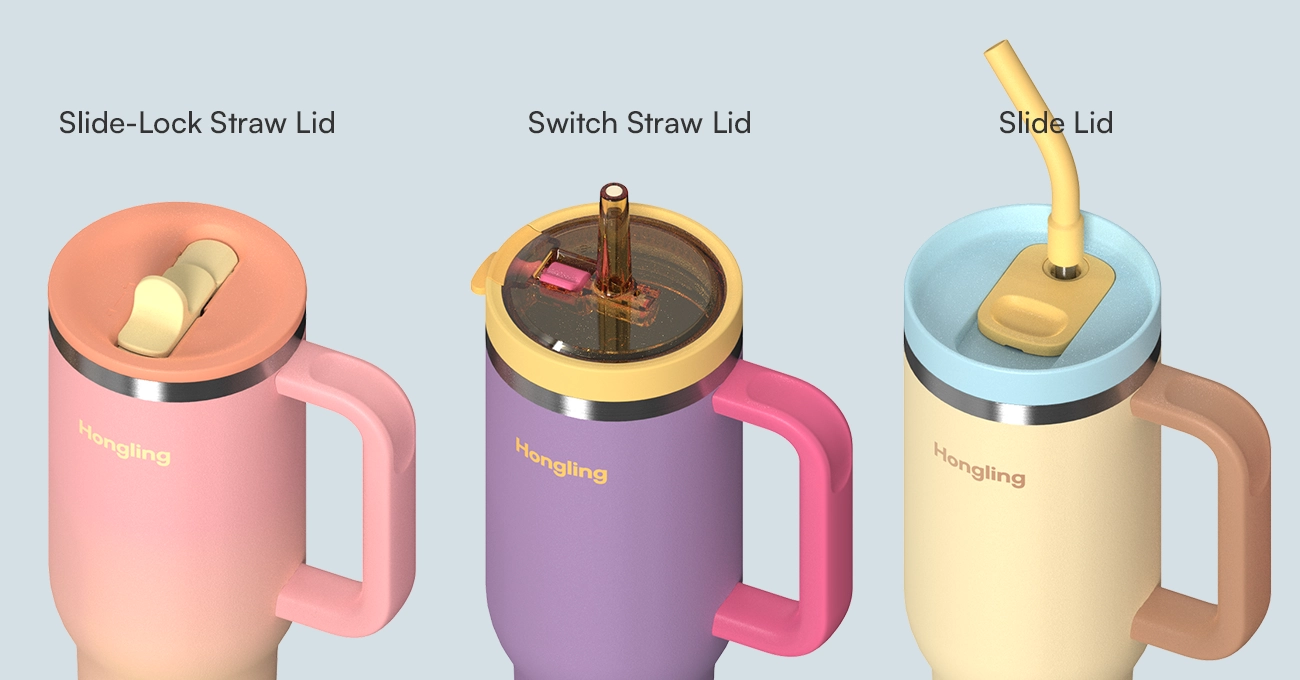 The Tumbler with Handle holds a full day’s water. It comes with 3 scenario lids (commute coffee, sports leak-proof, daily sipping), one for each use. Plus, it has a non-slip handle for easy holding and carrying, meeting daily hydration needs without swapping cups all day.